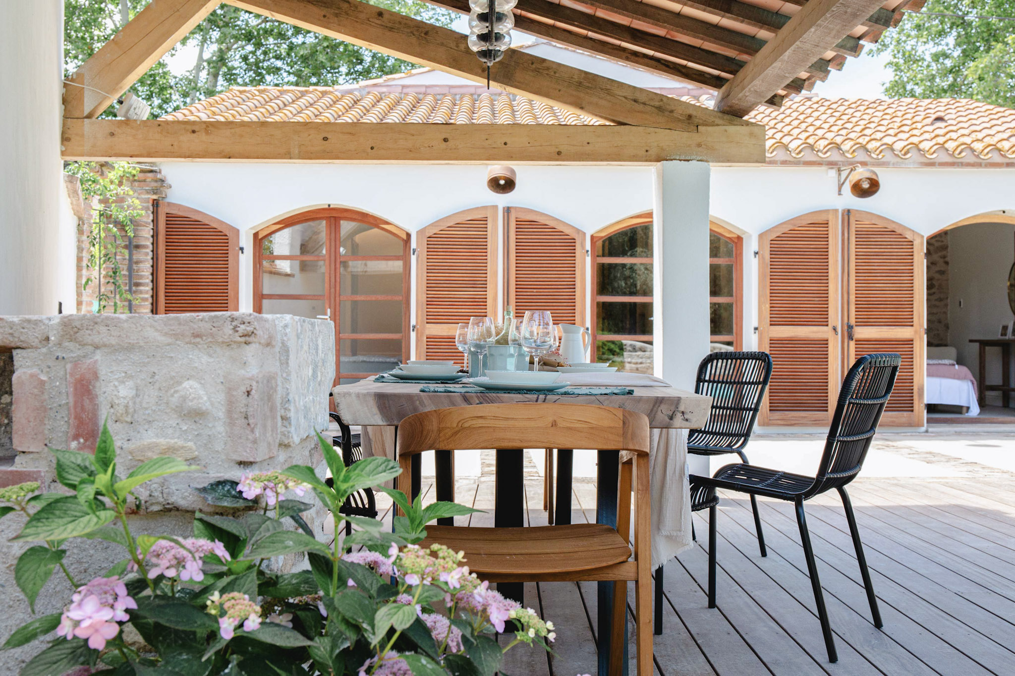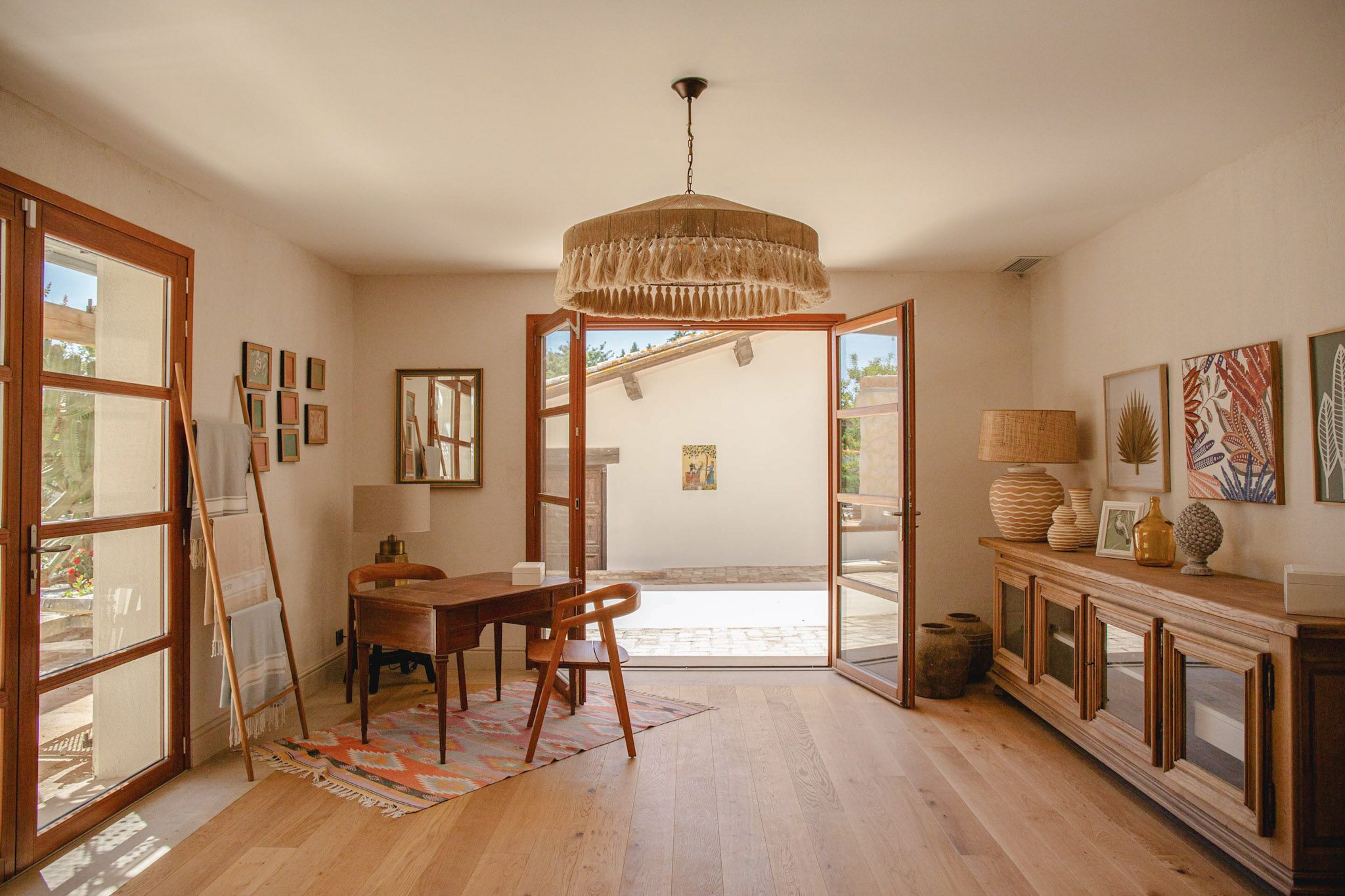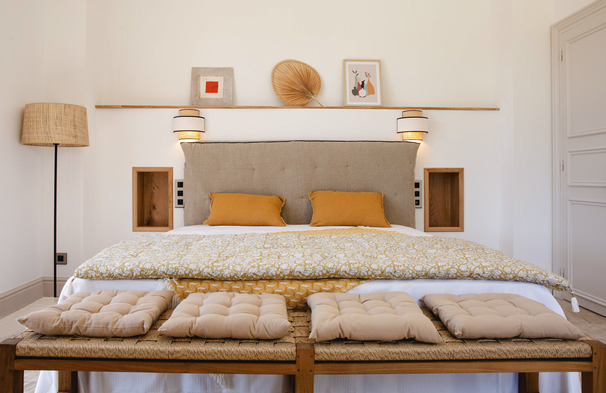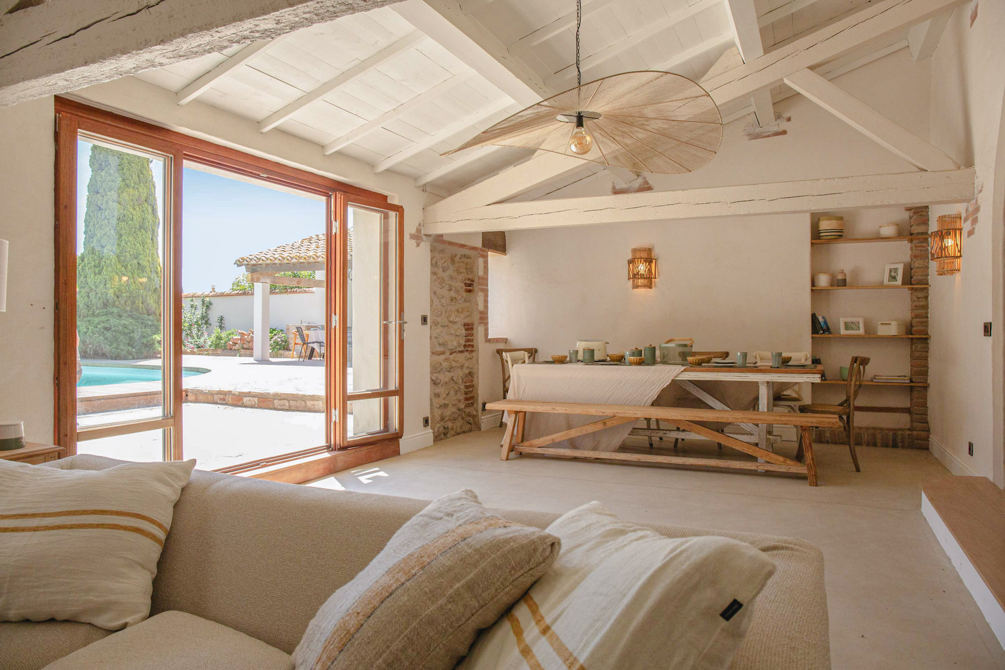 Just 7 minutes from the beach, Mas du Chemin de la Mer offers a peaceful retreat in the heart of the Pyrénées-Orientales, divided into two houses. With seven rooms decorated in a Mediterranean spirit, warm communal spaces, a lush garden and a swimming pool, every moment spent here is imbued with tranquility. Whether you're planning a vacation with family, friends or a business event, this mas offers the ideal setting for a reunion.