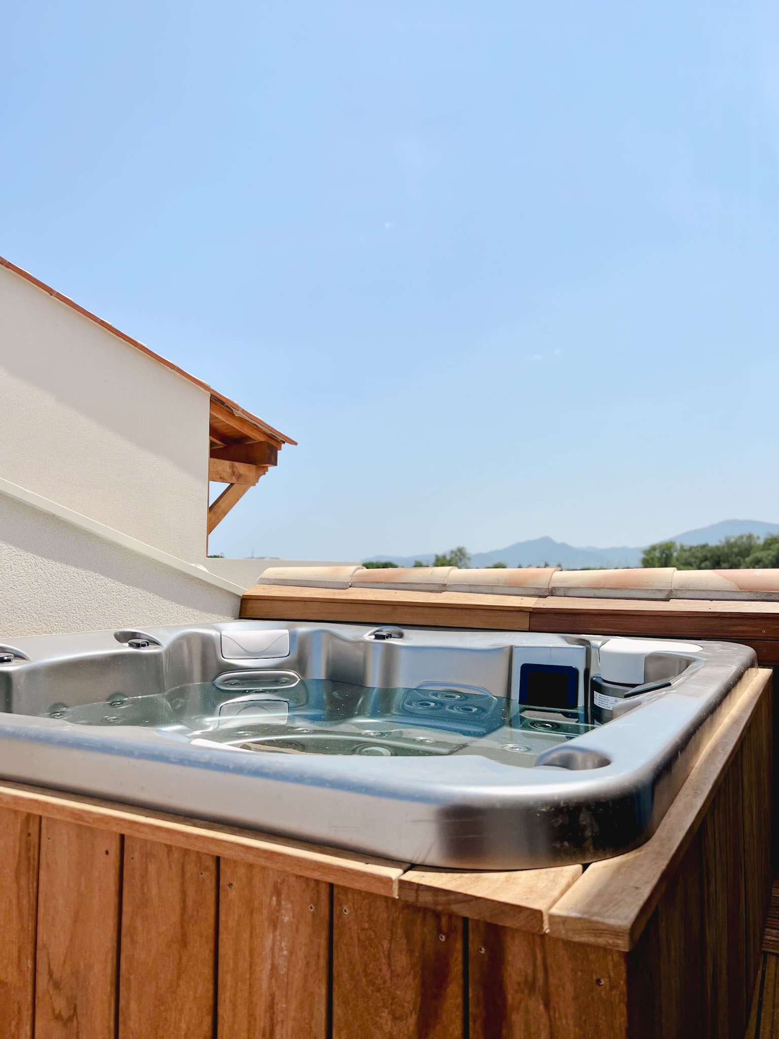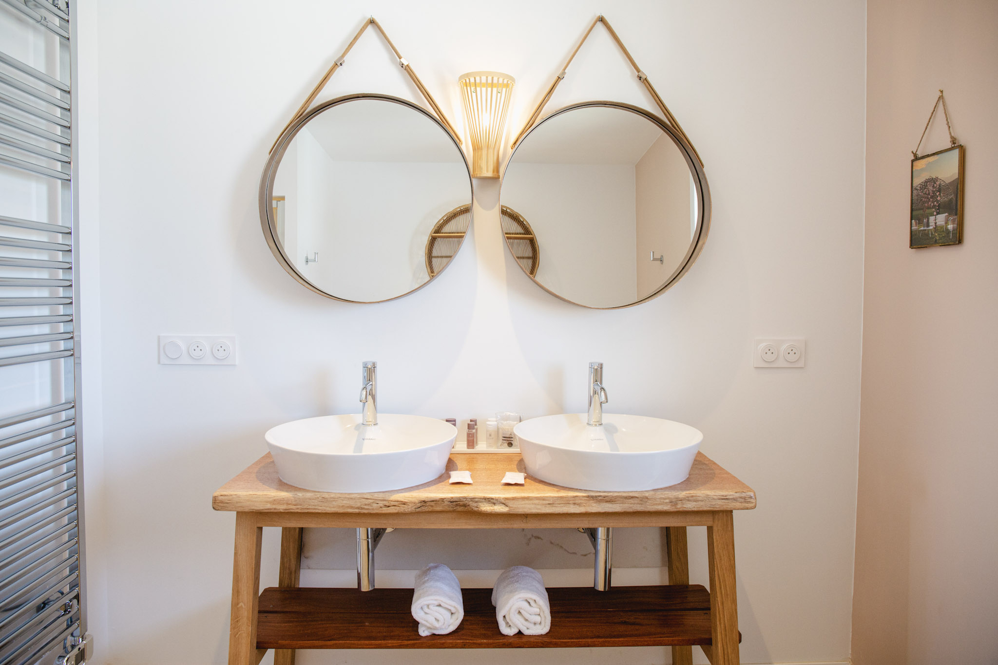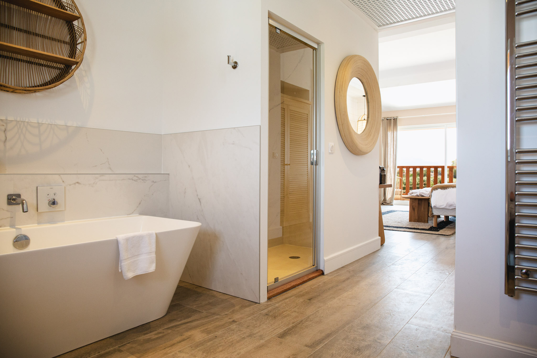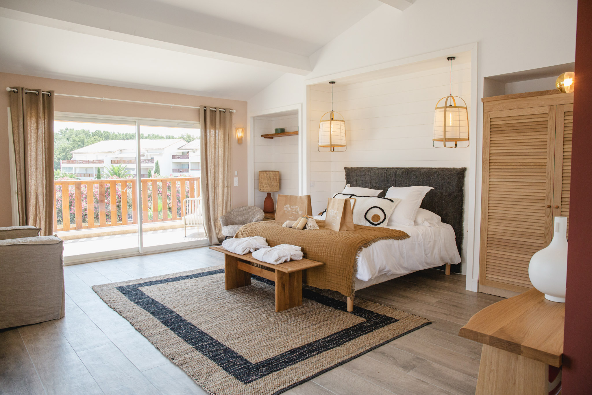 This 45m² suite is located on the 1st floor of our peninsula villas adjoining the large L'Ile de la Lagune house, just a few steps from the small wooden pontoon. Both spacious and intimate, they boast an elegant space as well as a furnished terrace with a private Jacuzzi, with a breathtaking view of the blue sky and the surrounding area.